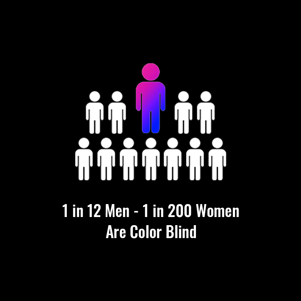 1 in 12 men have some form of color blindness compared to 1 in 200 women, with a total estimate of around 350 million people world wide.