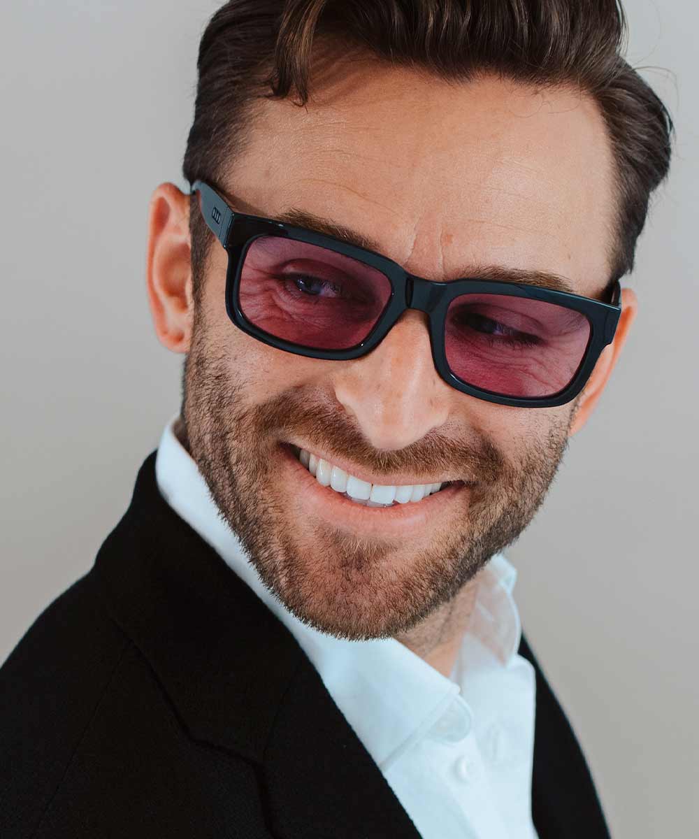 Up your style game with Shupnick. This thick-rim frame is hand-crafted in Italy and can take you from the summer BBQ to the red carpet.