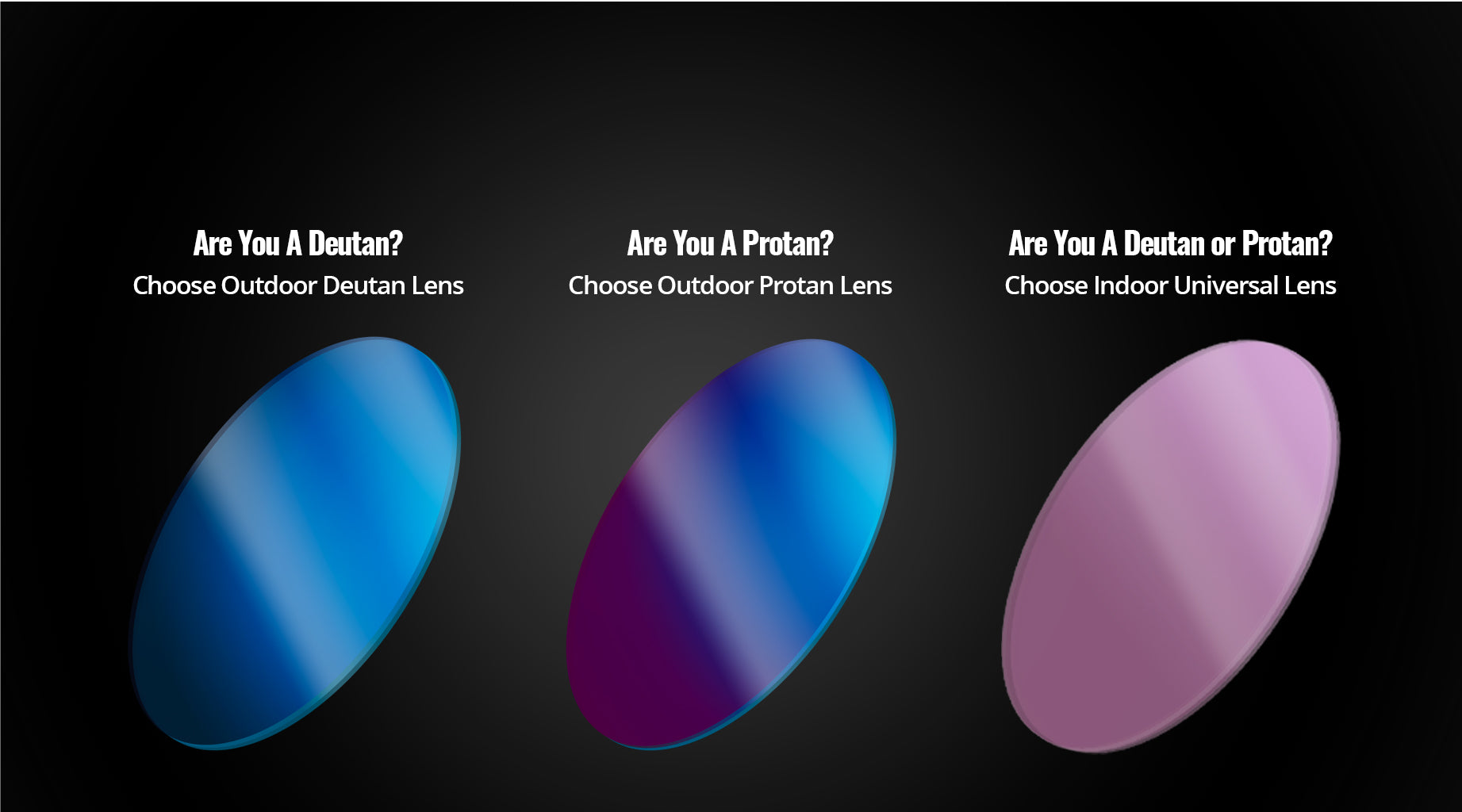 The Universal Indoor lens works for both of the two most common types of color blindness, Protan and Deutan.